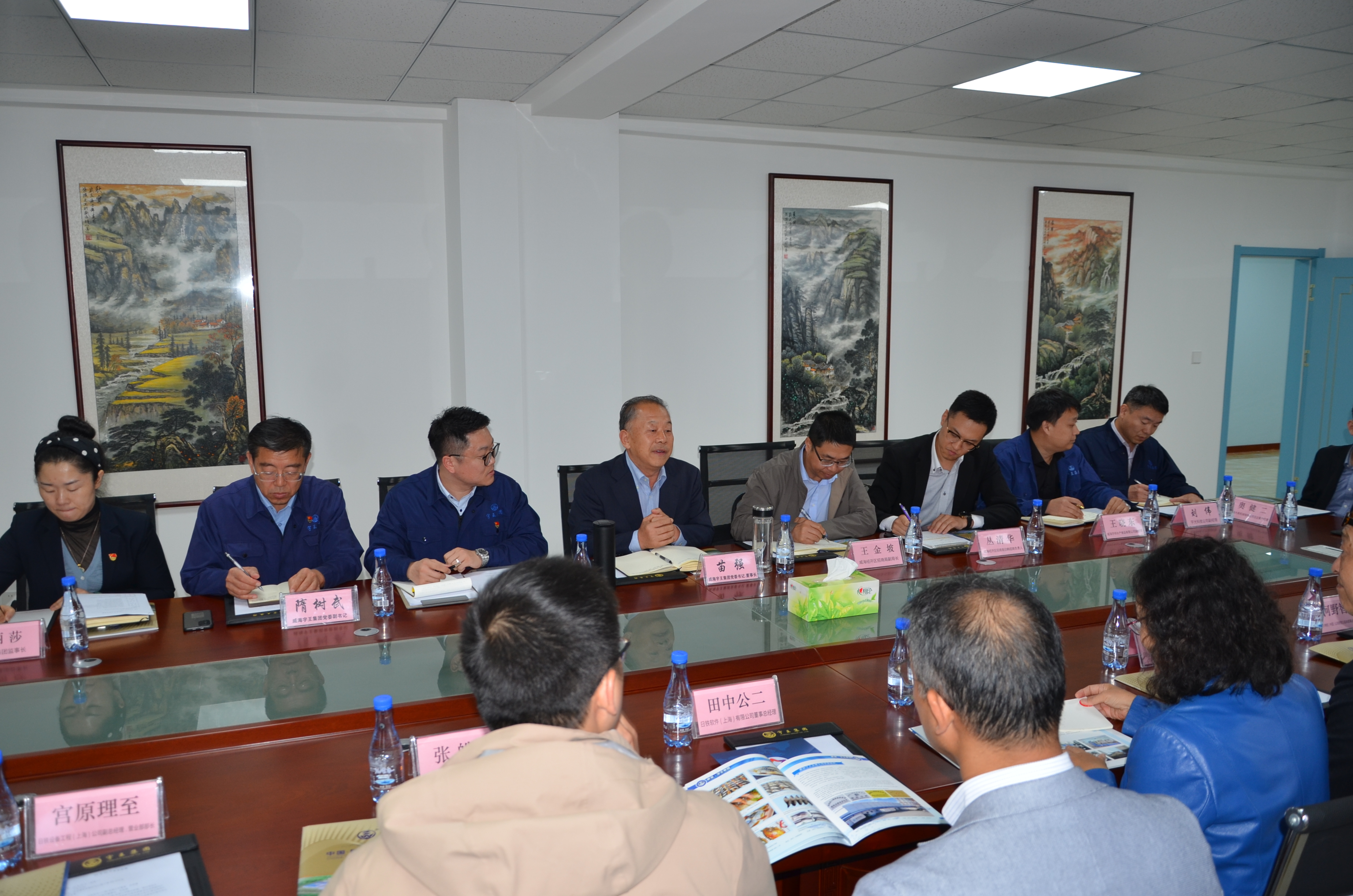 10月24日,商務(wù)部投資促進(jìn)局電子信息產(chǎn)業(yè)部黃慶紅主任牽頭主導(dǎo),日鐵軟件等11家日資企業(yè)高管在經(jīng)區(qū)招商局王金坡副局長的陪同下組團(tuán)到宇王集團(tuán)考察并洽談。雙方在宇王集團(tuán)融合科創(chuàng)大樓五樓舉行洽談會議,圍繞電子機(jī)械、食品加工、中日貿(mào)易等領(lǐng)域進(jìn)行合作探討,宇王集團(tuán)苗強(qiáng)董事長、苗佳琳總經(jīng)理出席會議。