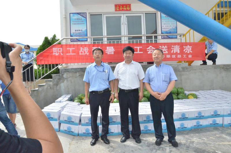814日上午,環翠區總工會黨組書記、主席鄒杰來到宇王集團,為炎炎烈日下仍堅守崗位的工作人員送去防暑降溫慰問品和貼心的關懷。